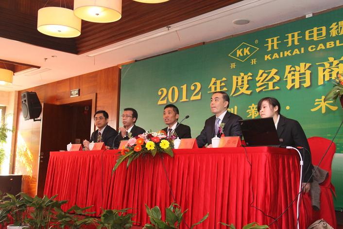 余紀(jì)炎董事長作“2011年度公司總結(jié)分析及2012年公司戰(zhàn)略規(guī)劃”主題報告,充分肯定了全體員工在2011年付出的辛勤努力,感謝在過去的一年,經(jīng)銷商給予開開電纜的大力支持。同時指出公司在2012年的工作重點(diǎn)放在電纜的生產(chǎn)、銷售,并提出要進(jìn)一步提高公司產(chǎn)品品質(zhì)及服務(wù)質(zhì)量,要為客戶提供先進(jìn)、可靠的產(chǎn)品及更優(yōu)質(zhì)的服務(wù)。