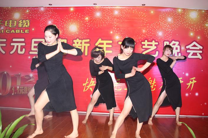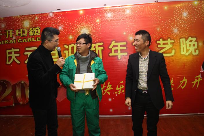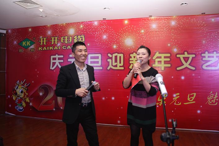 當晚19:00,在火爆熱辣充滿激情的勁舞中,開開電纜元旦聯歡晚會在椒江廠區三樓會議室拉開帷幕。一曲舞罷,主持人一一介紹到場的公司領導及嘉賓,緊接著由董事長余紀炎發表講話,并宣布晚會正式開始。
